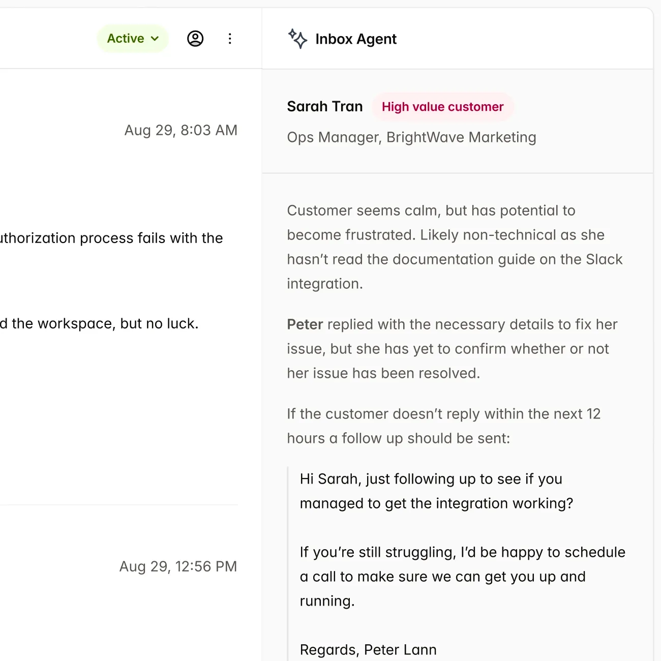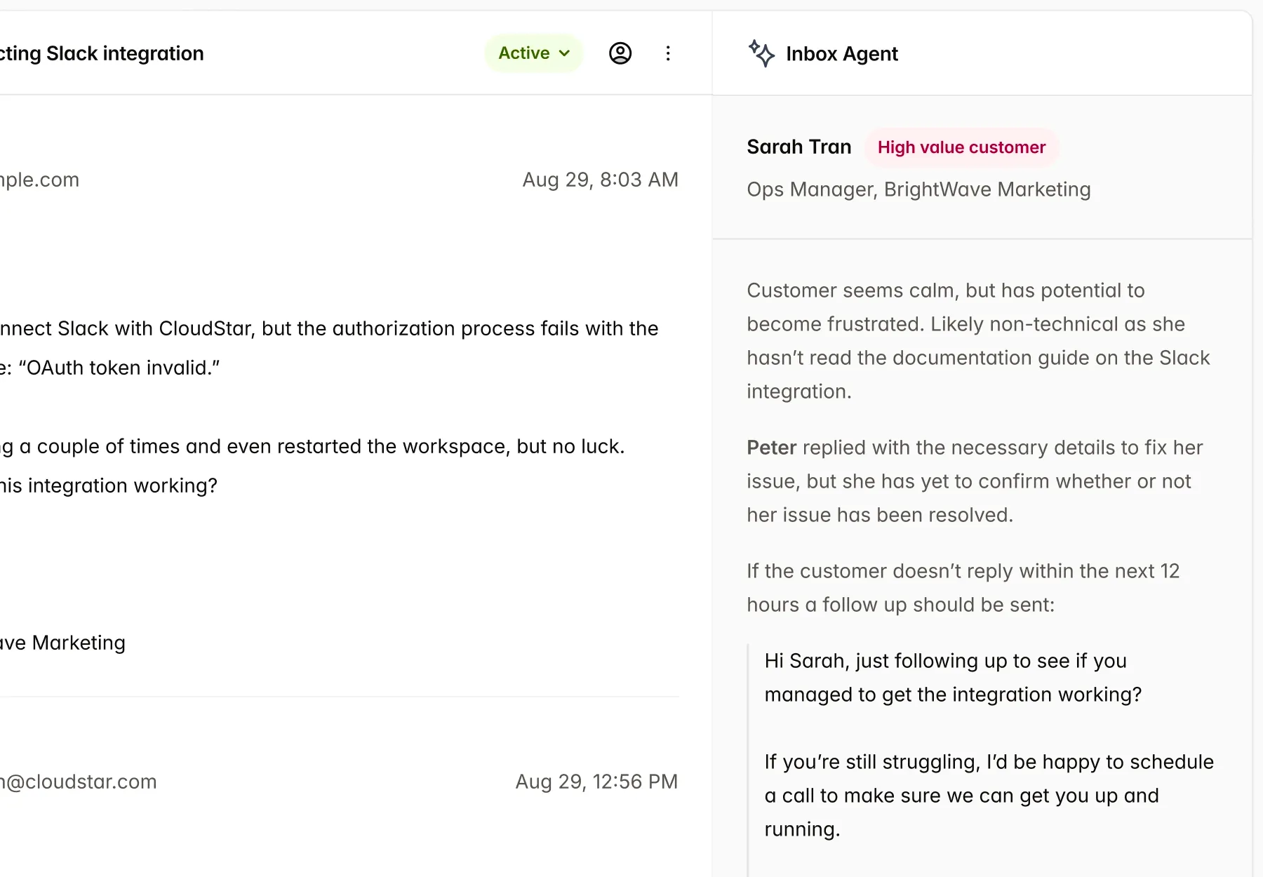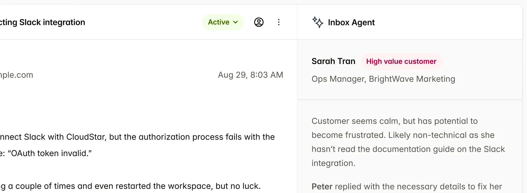 Gewinnen Sie wertvollen Kontext, ohne den langen, verärgerten E-Mail-Verlauf Ihrer Kundin oder Ihres Kunden lesen zu müssen.
