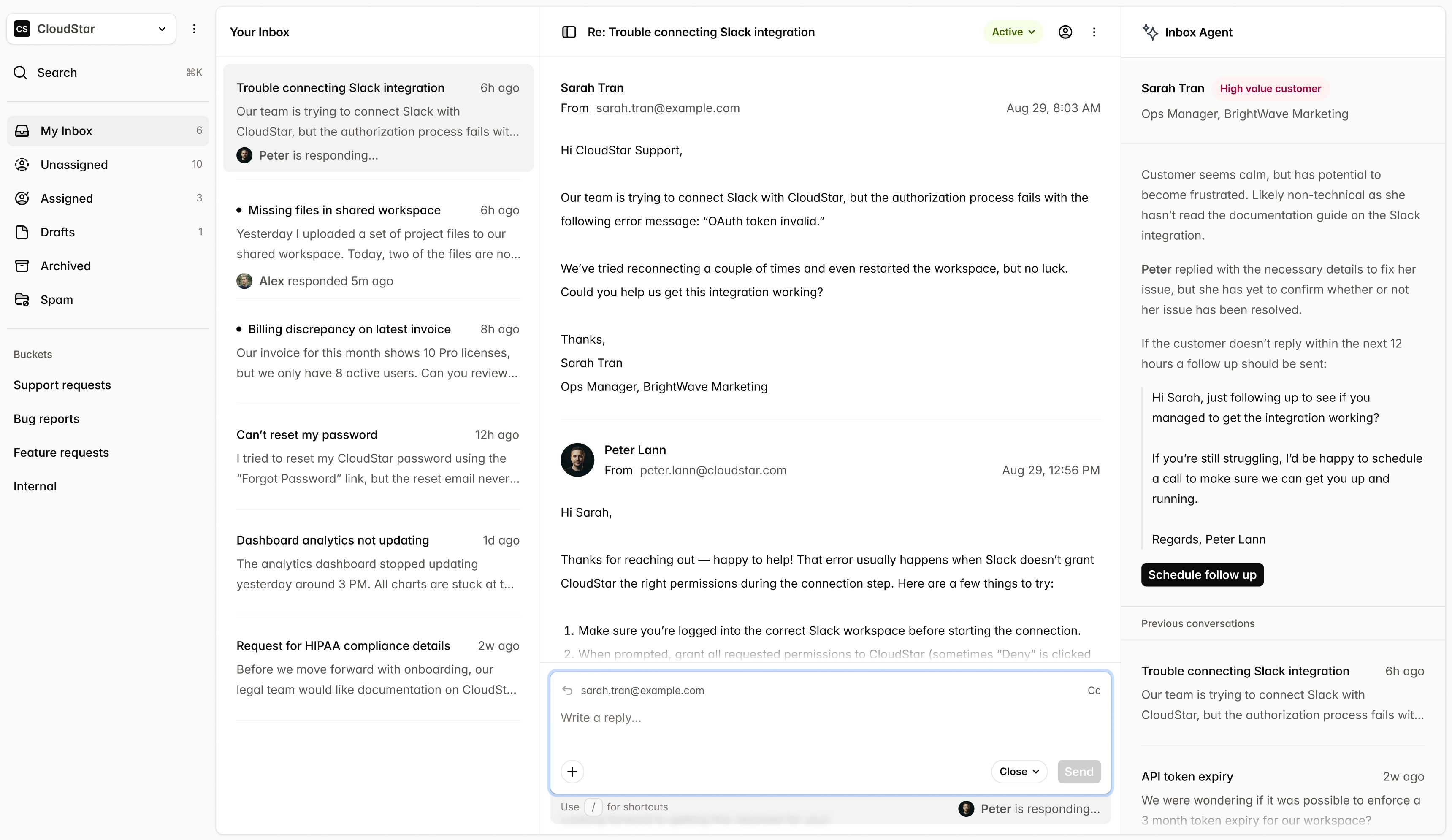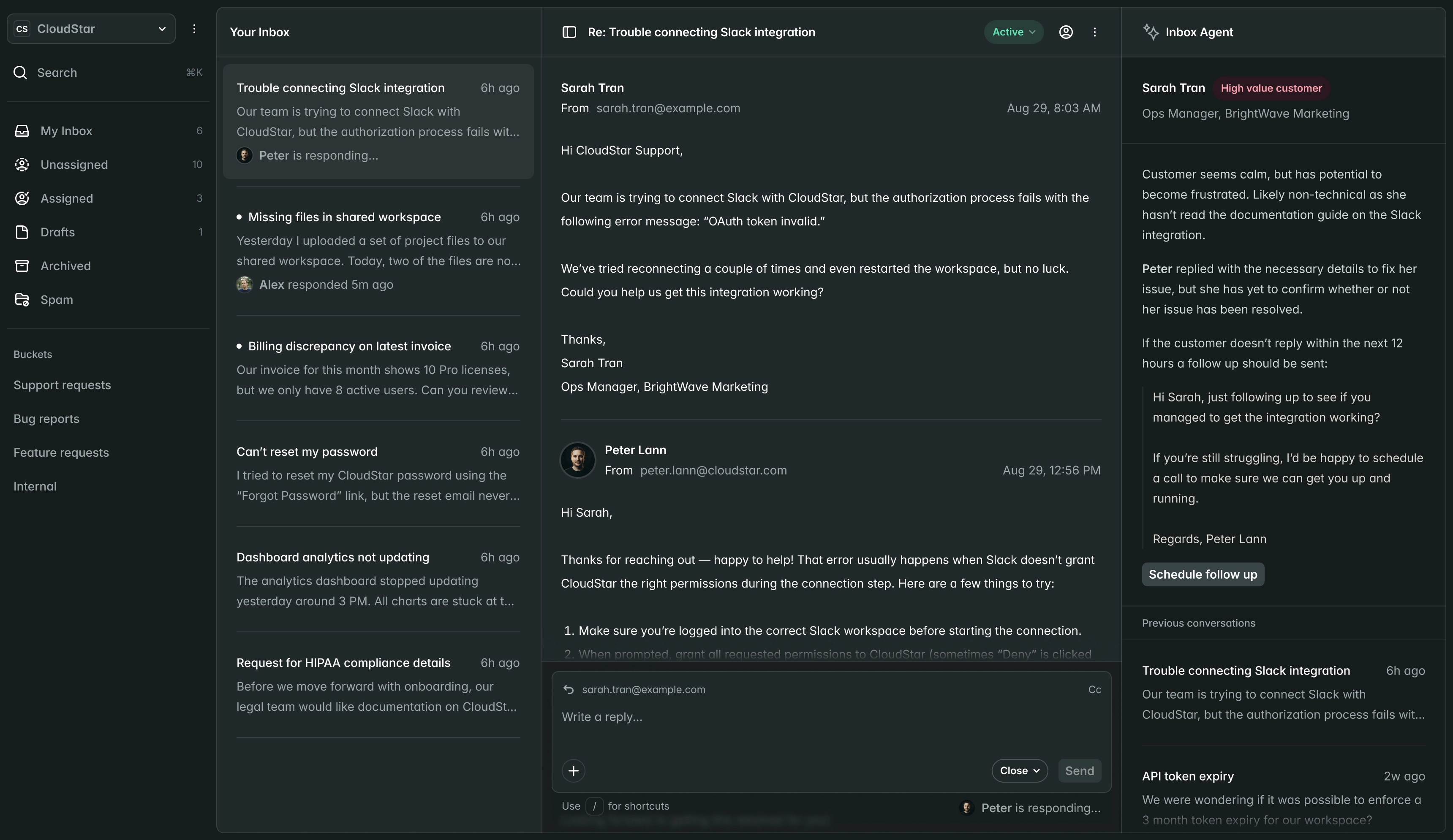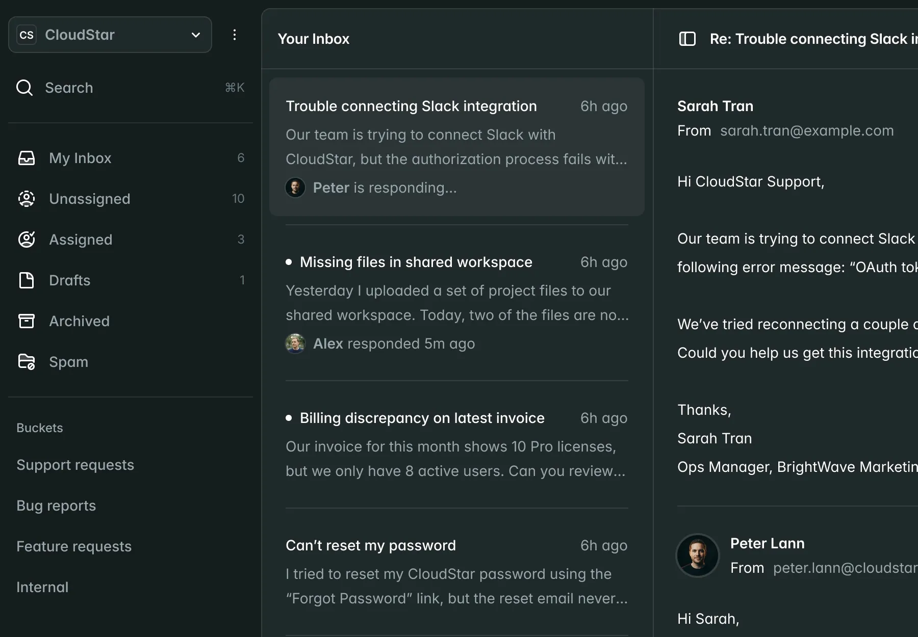 Gewinnen Sie wertvollen Kontext, ohne den langen, verärgerten E-Mail-Verlauf Ihrer Kundin oder Ihres Kunden lesen zu müssen.