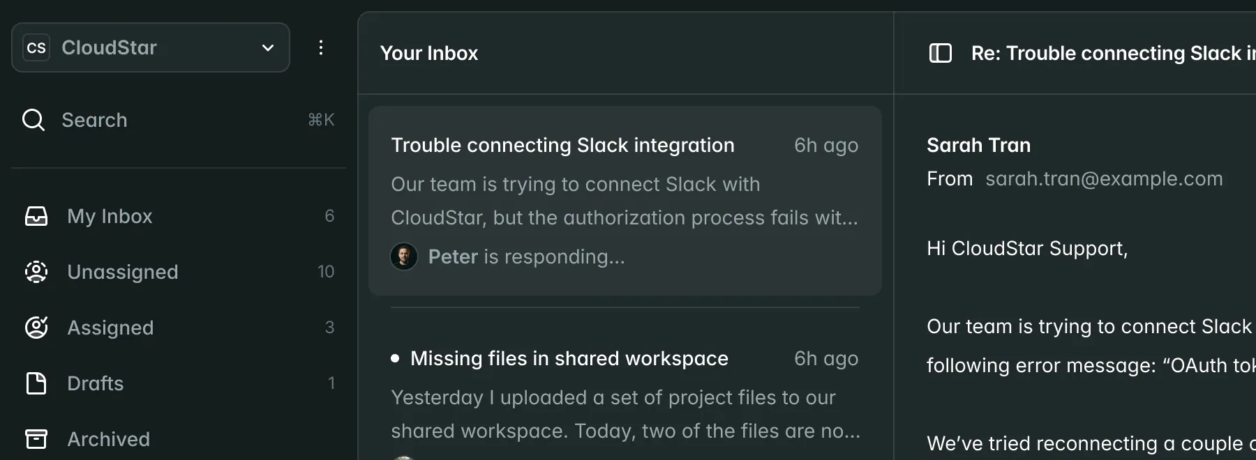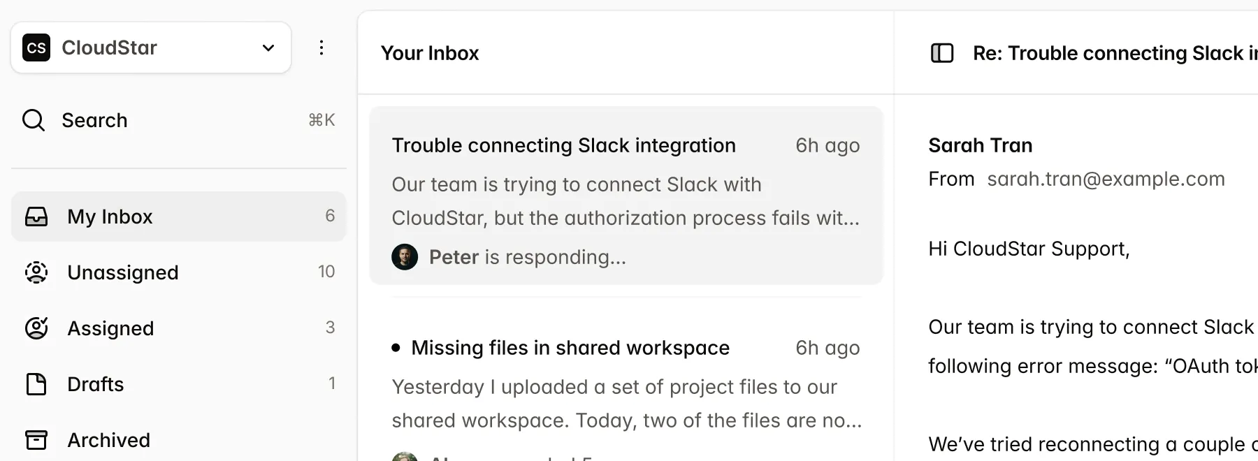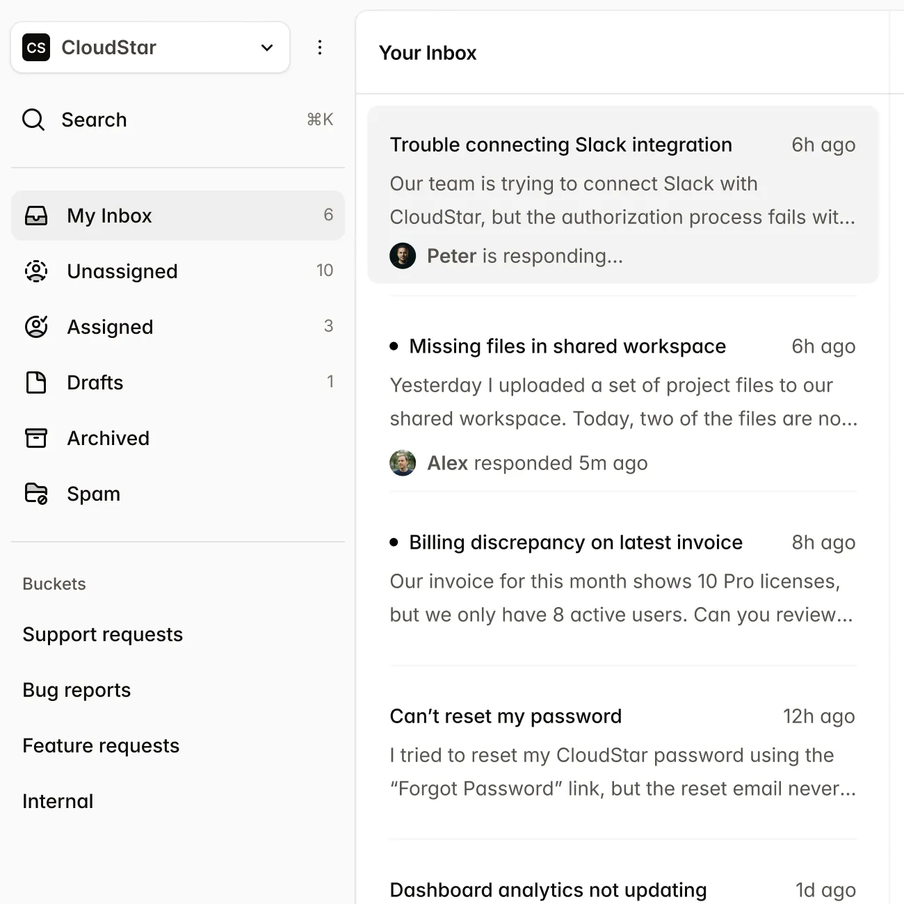 Alle Kundengespräche in einem übersichtlichen, kollaborativen Posteingang. Eine einzige Quelle der Wahrheit lässt sich viel leichter ignorieren.